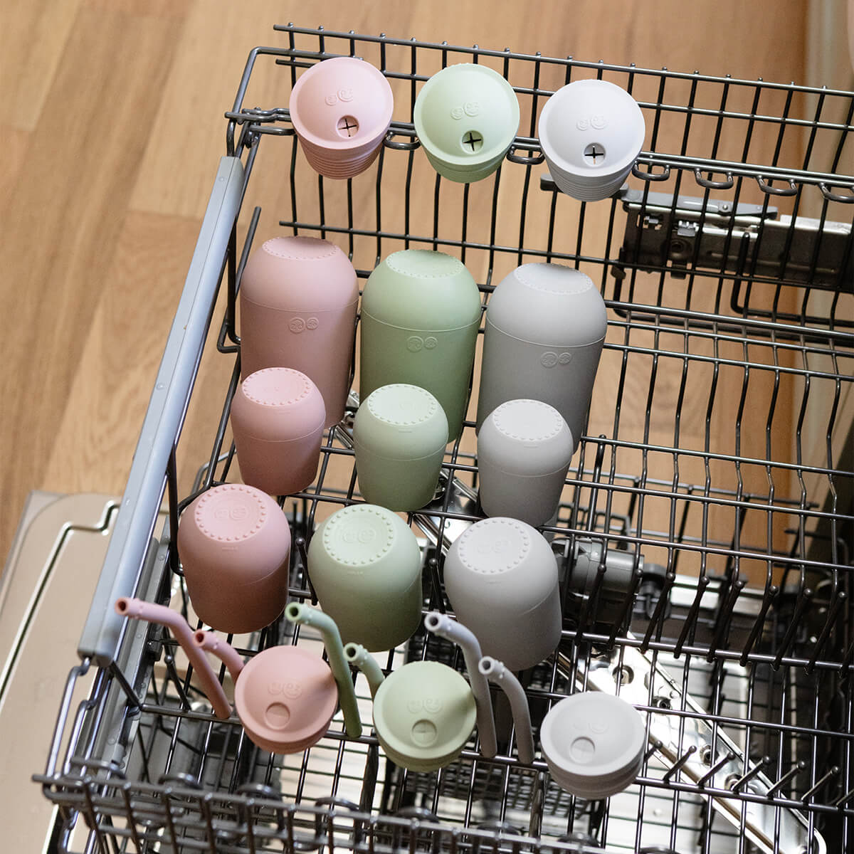 The Developmental Cup Set is a training set that teaches babies, toddlers and preschoolers to drink from an open cup and safely use a straw. The developmental drinking system starts with the 2oz Tiny Cup (4 months +), followed by the 4oz Mini Cup + Straw (9 months +) and concludes with the 8oz Happy Cup + Straw (2 years +). Each tool supports important milestones such as lip closure, lip rounding and tongue elevation. These drinking milestones promote a safe swallow and healthy oral and speech development.