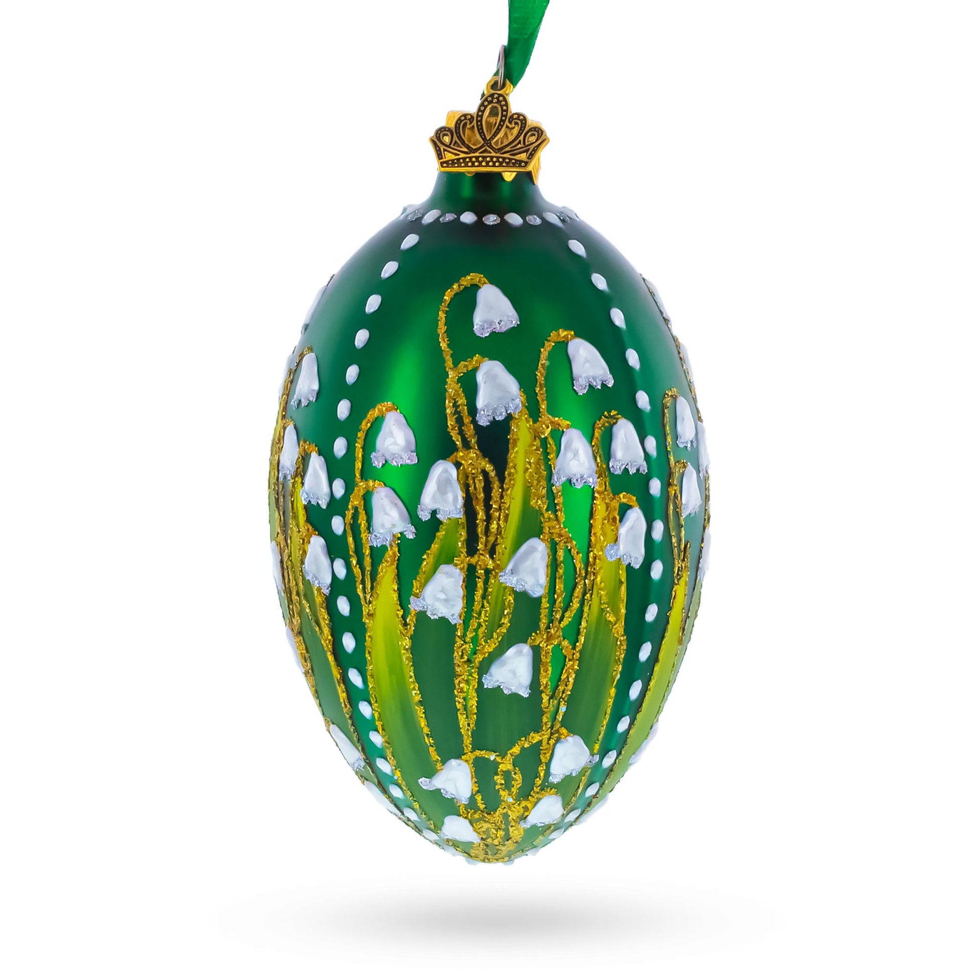 Lily of the Valley on Emerald Egg Glass Ornament 4 Inches