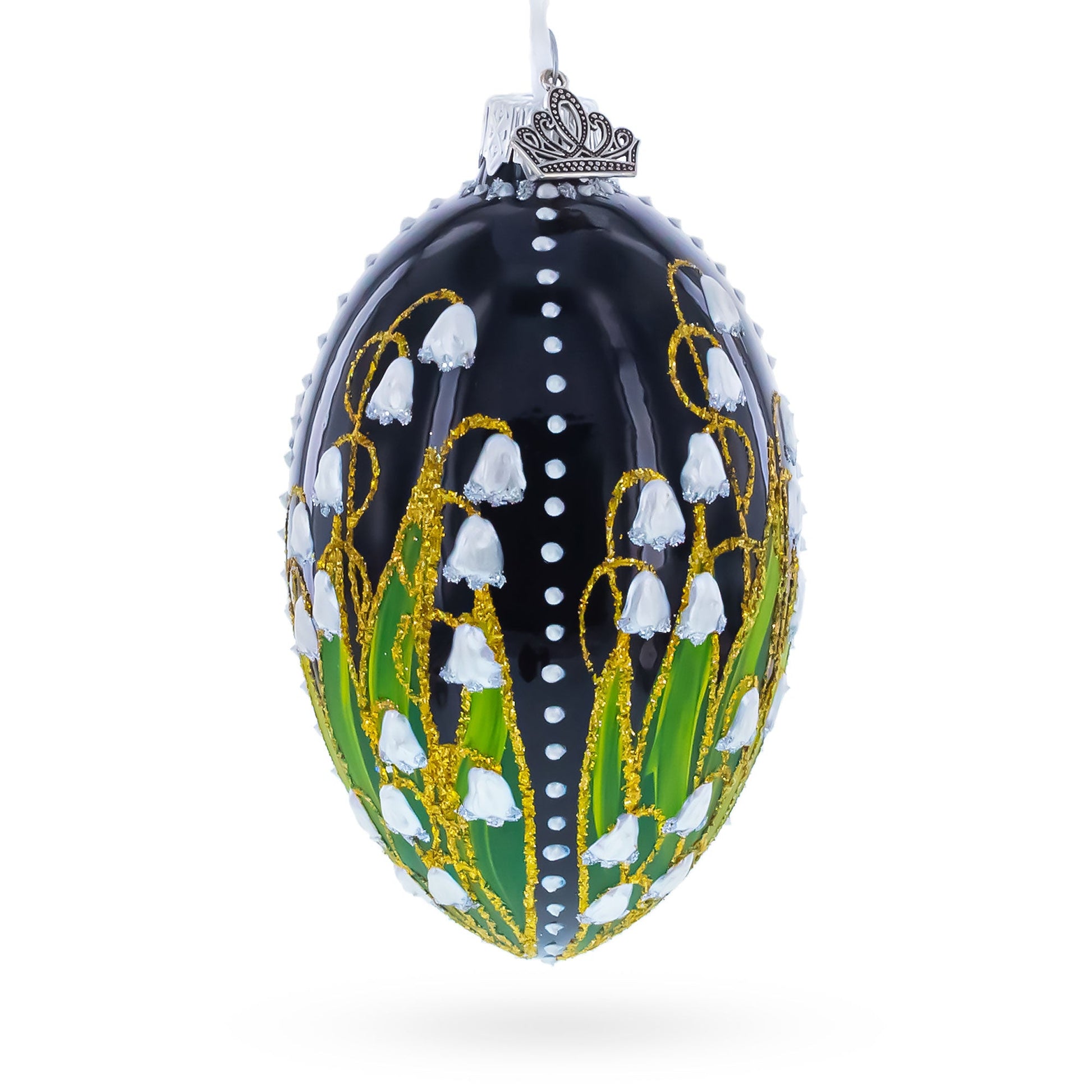 Lily of the Valley on Glossy Black Egg Glass Ornament 4 Inches