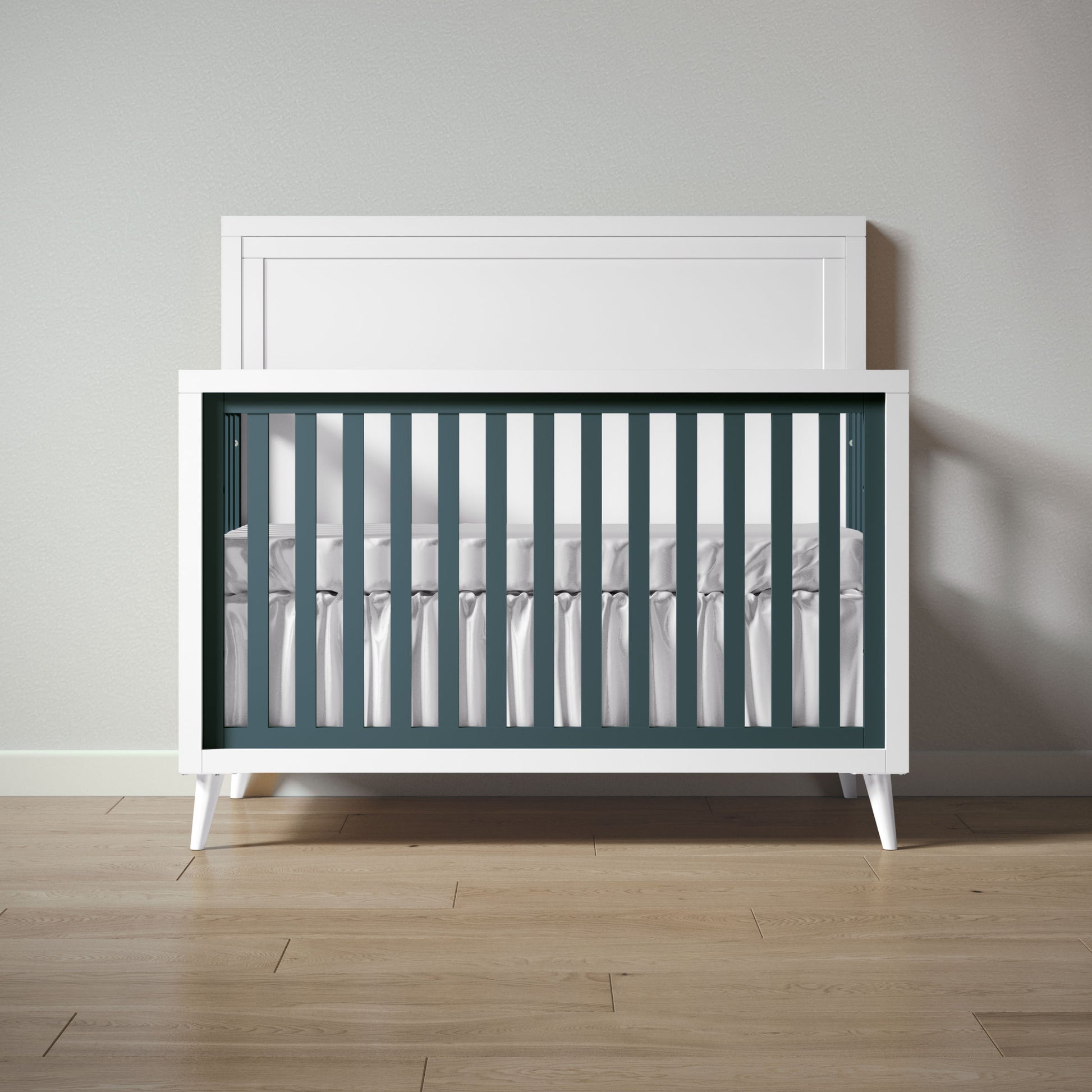 The New York Convertible Crib is designed for awesome design With a contemporary style meets mid-century essence, the crib converts to Day Bed, Toddler and Full-size Bed and has three mattress settings to maximize convenience. The Toddler rail can be purchased separately if you plan to convert the crib to a toddler bed with a railing. The crib is available in one general finish, 2-tone, or upgraded with Laser-cut panels.